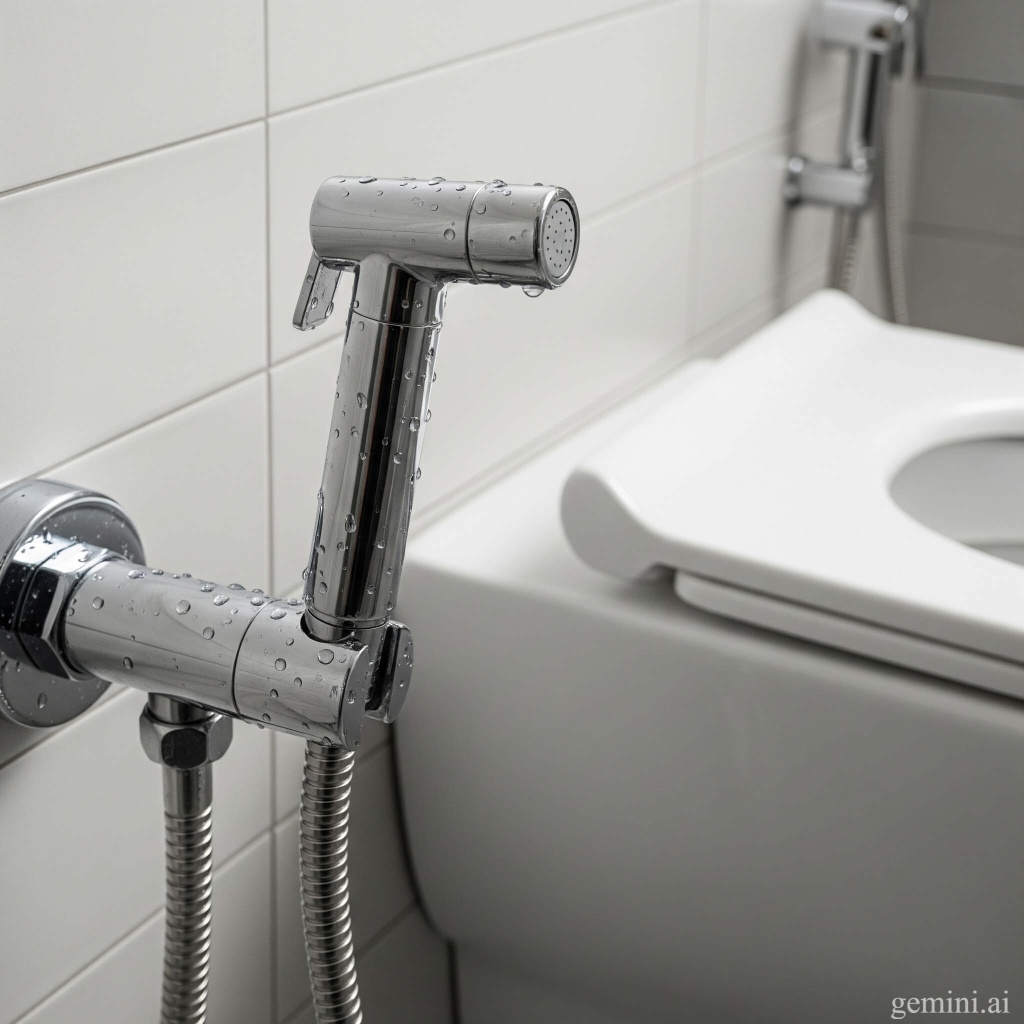 Санитарная душевая состоит из двух предметов: шланга и лейки. Так как устройство зачастую устанавливают рядом с унитазом, то в комплект может входить настенный фиксатор. Суть работы: в уборной монтируется настенный кран-смеситель со шлангом и лейкой, предназначенный для проведения естественных водных процедур (подмывание). Зависимо от типа конструкции, душевая система для подмывания может стать частью обычного умывальника. Достоинства такого сантехнического устройства:
