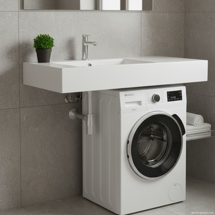 Если альтернативных способов установки стиральной машины в ванной нет, то монтируют под раковину. При этом соблюдают правила сборки, стараясь обезопасить себя от электроудара, а соседей от затопления.