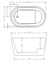 Овальная конфигурация чаши обеспечивает эргономичное распределение внутреннего пространства. Каркасная система включает стальные усиливающие элементы и регулируемые опоры. Высота установки может быть скорректирована в пределах ±2,5 см от базового значения. Толщина акрилового слоя составляет 3,8 мм с дополнительным армированием.