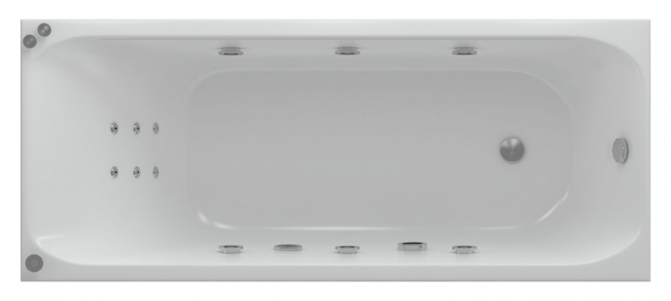 Ванна предназначена для пристенной установки, что облегчает монтаж и позволяет максимально рационально использовать пространство. Возможна установка подголовников и поручней для комфортного принятия ванны, а также встроенных смесителей с любым типом управления. Конструкция каркаса допускает модификацию под размеры помещения. По желанию пользователя доступна интеграция системы гидромассажа, аэромассажа и хромотерапии, что обеспечивает комплексное водное воздействие на тело. Защита от сухого пуска может быть установлена дополнительно, озонирование не предусмотрено. Ручки и другие аксессуары приобретаются отдельно, позволяя полностью адаптировать ванну под персональные потребности.