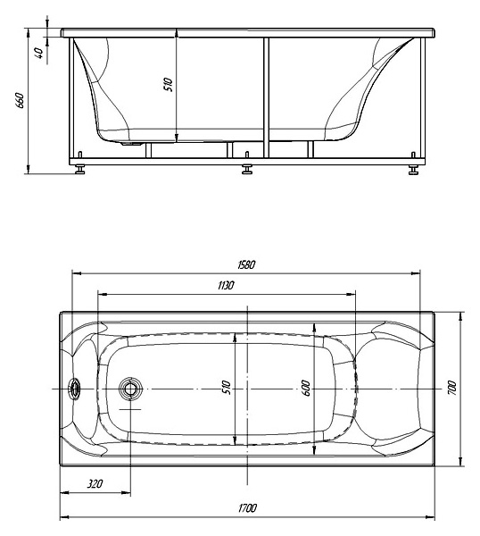 Акриловая ванна Акватек Альфа 170x70 изготовлена из литьевого акрила толщиной 4 мм, обладающего высокой прочностью и стабильной структурой. Материал устойчив к механическим нагрузкам, химическому воздействию моющих средств и не подвержен деформации при регулярном использовании. Габариты изделия составляют 170x70 см, высота вместе с опорой — 66 см, вместимость чаши — 280 литров. Прямоугольная форма позволяет рационально использовать пространство, а пристенный тип монтажа делает модель универсальной для установки в стандартных санузлах. Слив и перелив расположены в классической позиции, диаметр сливного отверстия — 5,2 см, что обеспечивает совместимость с большинством стандартных систем. В комплект входит сборно-разборный сварной каркас, обеспечивающий жесткость и равномерное распределение нагрузки.