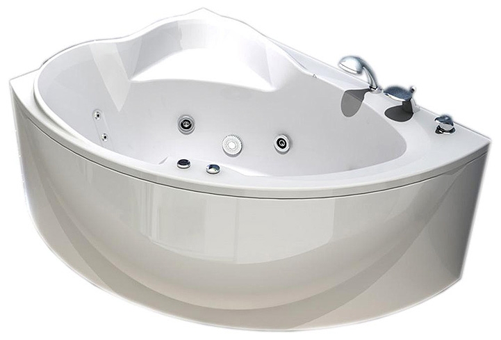 Стандартная комплектация включает ванну, усиленный каркас, слив-перелив в хромированном исполнении, а также оборудование для гидромассажа. Управление системой осуществляется с помощью встроенных элементов. При необходимости покупатель может дополнить модель опциями: фронтальной панелью, дополнительными форсунками, подсветкой или аэроустройством.