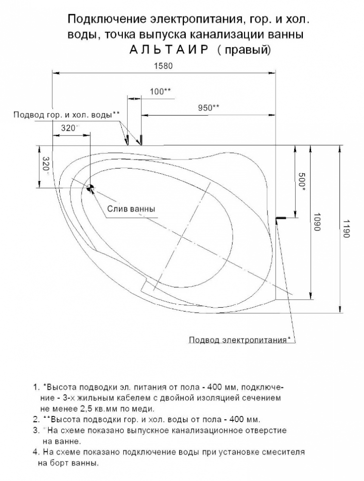 Акриловая ванна Акватек Альтаир 158x120 правая