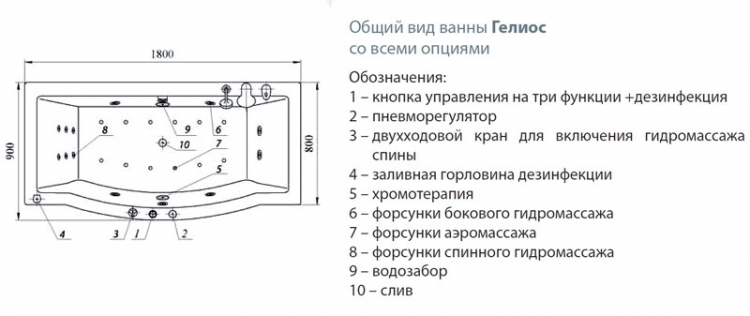 Акриловая ванна Акватек Гелиос 180x90 изготовлена из высококачественного санитарного акрила, обеспечивающего устойчивость к нагрузкам и длительный срок эксплуатации. Поверхность устойчива к повреждениям, сохраняет белизну и легко очищается без применения агрессивных средств. Фронтальная панель входит в комплект и закрывает нижнюю часть чаши, упрощая монтаж и обслуживание. Размеры изделия составляют 180 см в длину и 90 см в ширину, что делает модель подходящей для просторных ванных комнат. Высота конструкции с установленной опорой оптимизирована для удобства посадки и выхода. Внутреннее пространство рассчитано на комфортное размещение одного или двух пользователей, при этом форма чаши учитывает анатомию тела и снижает нагрузку на позвоночник и суставы.