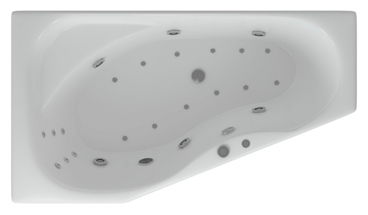 Ванна оснащена вклеенным цельнометаллическим сварным каркасом, который поставляется в комплекте. Фронтальный и боковой экраны приобретаются отдельно. В стандартный комплект входит слив-перелив, обеспечивающий безопасное и удобное использование. Поверхность дна покрыта антискользящим материалом, что минимизирует риск травм. Подголовник и ручки доступны к установке отдельно, позволяя индивидуально настраивать эргономику изделия под пользователя.