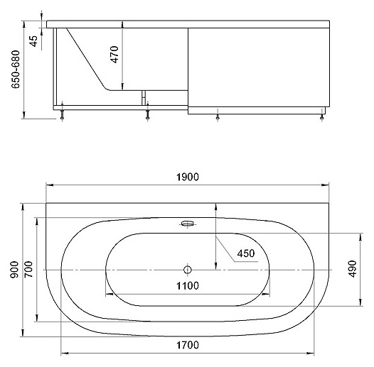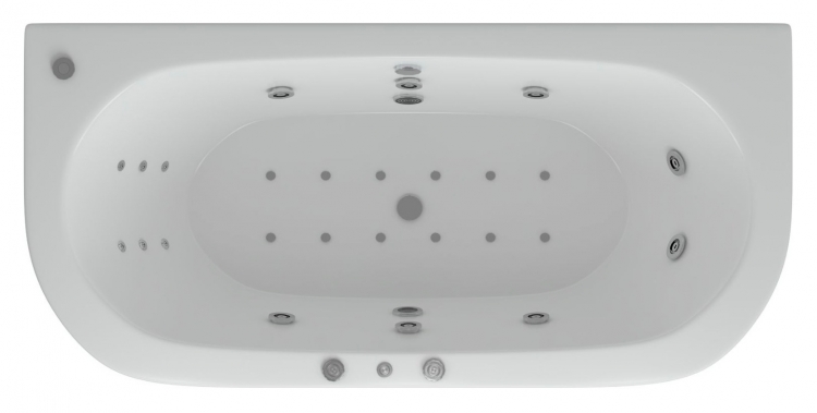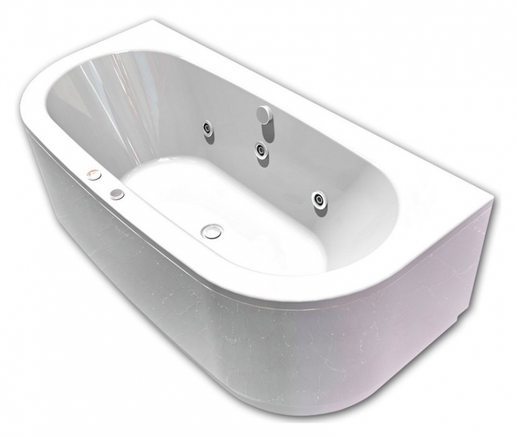 В базовую комплектацию входит встроенный металлический каркас и комплект слив-перелив. Экран (фронтальный и боковой) предлагается к покупке отдельно. Антискользящая поверхность исключает скольжение и делает использование безопасным. Подголовник и ручки приобретаются дополнительно, что позволяет подобрать индивидуальную комплектацию. Возможна интеграция смесителей и поручней в зависимости от пожеланий покупателя. Встроенные опции не изменяют базовую геометрию изделия, монтаж выполняется без нарушения конструкции.