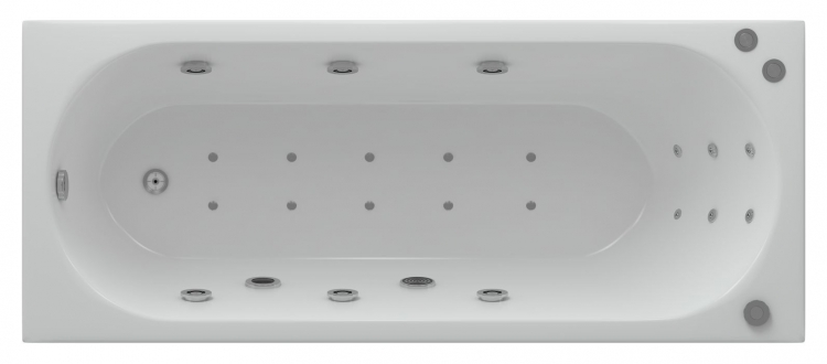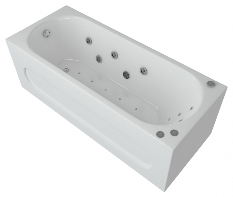 Базовая модель поддерживает расширение функционала за счёт установки систем гидромассажа, аэромассажа, хромотерапии. Доступна интеграция встроенных смесителей, монтаж поручней и изменение конструкции каркаса под индивидуальные требования. Возможно оснащение защитой от сухого пуска, которая предотвращает повреждения оборудования при включении без воды. Управление выбирается по желанию заказчика – ручное или электронное. Опция озонирования в данной модели не предусмотрена.