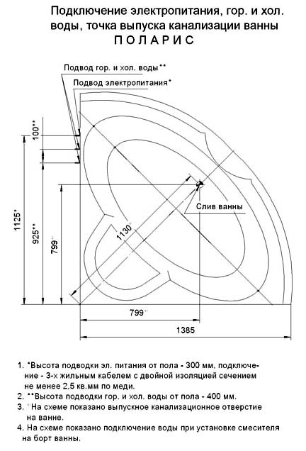 Акриловая ванна Акватек Поларис–1 138.5x138.5