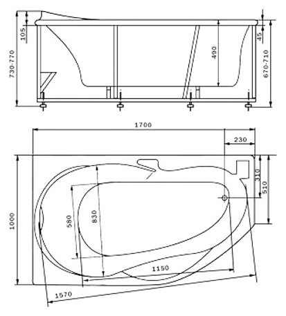 Акриловая ванна Акватек Таурус имеет асимметричную форму с габаритами 170х100 см и высотой с опорой 73 см. Объём резервуара составляет 270 литров, что обеспечивает комфортное размещение. Изготовлена из 100% литьевого акрила толщиной 4 мм, устойчивого к деформациям и механическим воздействиям. Слив диаметром 5,2 см оборудован системой перелива, поставляемой в комплекте. Каркас выполнен из цельнометаллической сварной конструкции сборно-разборного типа и входит в комплект поставки. Антискользящее покрытие поверхности исключает риск травм при эксплуатации.
