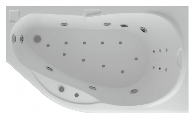 Каркас в виде сборно-разборной цельнометаллической сварной конструкции, которая идет в комплекте и обеспечивает стабильность чаши. В стандартную комплектацию включен слив-перелив. Дополнительно можно приобрести фронтальный и боковой экраны, закрывающие пространство под ванной. Для повышения удобства предусмотрена возможность установки подголовника и ручек, которые приобретаются отдельно. Поверхность чаши имеет антискользящее покрытие, предотвращающее риск скольжения при эксплуатации.