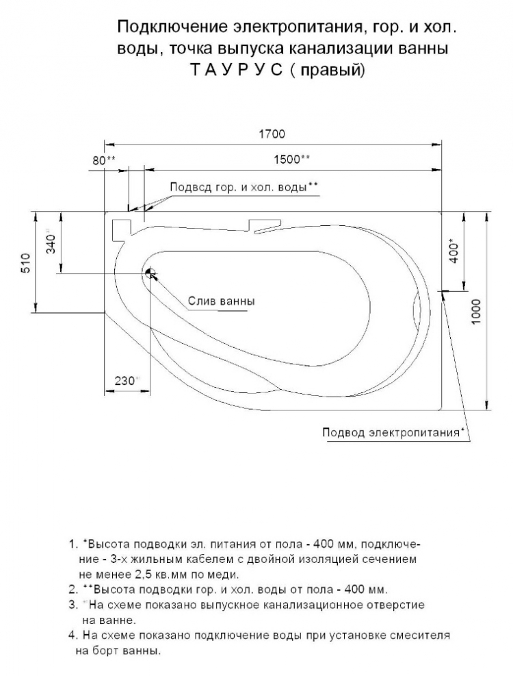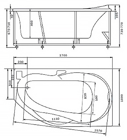 Акриловая ванна Акватек Таурус 170x100 правая изготовлена из литьевого акрила толщиной 4 мм. Материал устойчив к механическим нагрузкам, сохраняет прочность при долгосрочной эксплуатации, не впитывает загрязнения и легко очищается. Поверхность устойчива к истиранию и воздействию бытовой химии, не изменяет цвет со временем. Асимметричная форма позволяет рационально использовать пространство, обеспечивая удобное размещение в углу комнаты. Монтаж осуществляется пристенным способом. Габариты составляют 170х100 см, высота вместе с опорой достигает 73 см. Вместимость чаши равна 270 литров, что обеспечивает достаточный объем для полноценного использования. Перелив установлен в стандартном положении, диаметр сливного отверстия — 5,2 см. Изделие производится в России и имеет гарантию 20 лет, что подтверждает надежность конструкции и материалов.