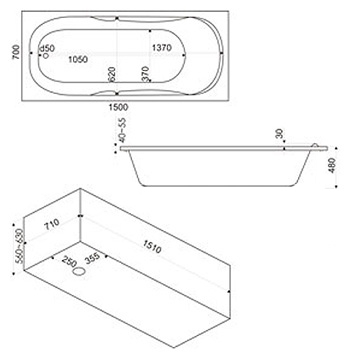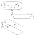 Ванна поставляется без ножек, что дает возможность установки на любую подготовленную поверхность или интеграцию в мебельный каркас. Слив-перелив в комплект не входит, что позволяет самостоятельно выбрать подходящую систему слива и перелива. Изделие не имеет гидромассажной функции, стеклянных вставок или шторки, что снижает сложность монтажа и эксплуатации. Прямоугольная форма обеспечивает равномерное распределение воды и комфортное положение тела во время купания. Ванна не является угловой, что облегчает планирование пространства и размещение дополнительных сантехнических элементов.