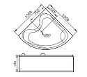Угловая форма чаши оптимизирована для установки в помещениях ограниченной площади. Каркасная система включает стальные усилители и регулируемые опорные элементы. Толщина акрилового слоя составляет 4,5 мм с дополнительным армированием стекловолокном. Антискользящее покрытие нанесено на дно чаши методом напыления.