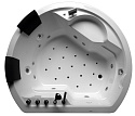 Объем чаши рассчитан на заполнение 600 литров воды при рабочем уровне. Гидромассажная система включает 10 форсунок с регулируемым направлением потока. Аэромассажная система состоит из 17 воздушных форсунок, равномерно распределенных по периметру чаши.