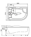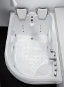 Угловая асимметричная форма оптимизирована для установки в угол помещения. Каркасная система включает стальные усилители и регулируемые опорные элементы. Гидромассажная система состоит из насоса мощностью 1100 Вт и предусматривает регулировку интенсивности массажа. Конструкция оснащена защитой от сухого пуска и функцией массажа спины.