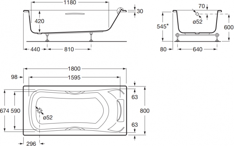 Ванна разработана с учетом анатомических особенностей тела, что обеспечивает комфорт при принятии водных процедур. Ширина 80 см и длина 180 см позволяют удобно разместиться взрослому человеку, а глубина оптимизирована для погружения всего тела. Внутренние углы и изгибы корпуса спроектированы для равномерного распределения давления воды и обеспечения удобного положения при отдыхе. Эргономичная форма упрощает посадку и выход, снижает нагрузку на спину и обеспечивает безопасное использование. Благодаря прямым и плавным линиям ванна легко интегрируется в разные планировки помещений, включая компактные и стандартные ванные комнаты.