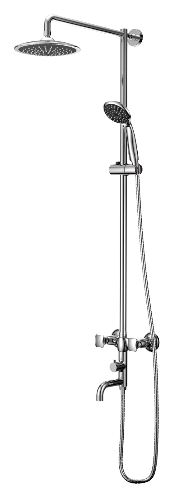 Функциональная душевая система с широкой лейкой, с эффектом настоящего тропического ливня. Штанга регулируется под любой рост.