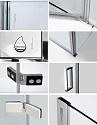 <li>Прочный распашной механизм на петлях из латуни - Механизм рассчитан минимум на 30 000 рабочих циклов. Это значит, что семья из четырех человек сможет пользоваться душевым уголком минимум 10 лет. Распашной механизм дает возможность широкого проема для входа внутрь душевого уголка. </li>