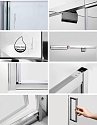 <li>Комплектующие душевой двери имеют хромоникелевое покрытие, которое устойчиво к потускнению и легко очищается.</li>