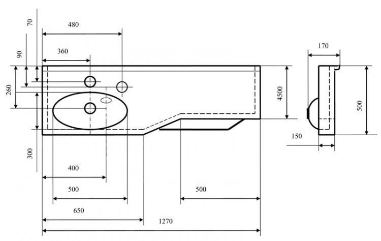 Мебельная раковина Акватон Отель 127 R с навесами и диспенсером