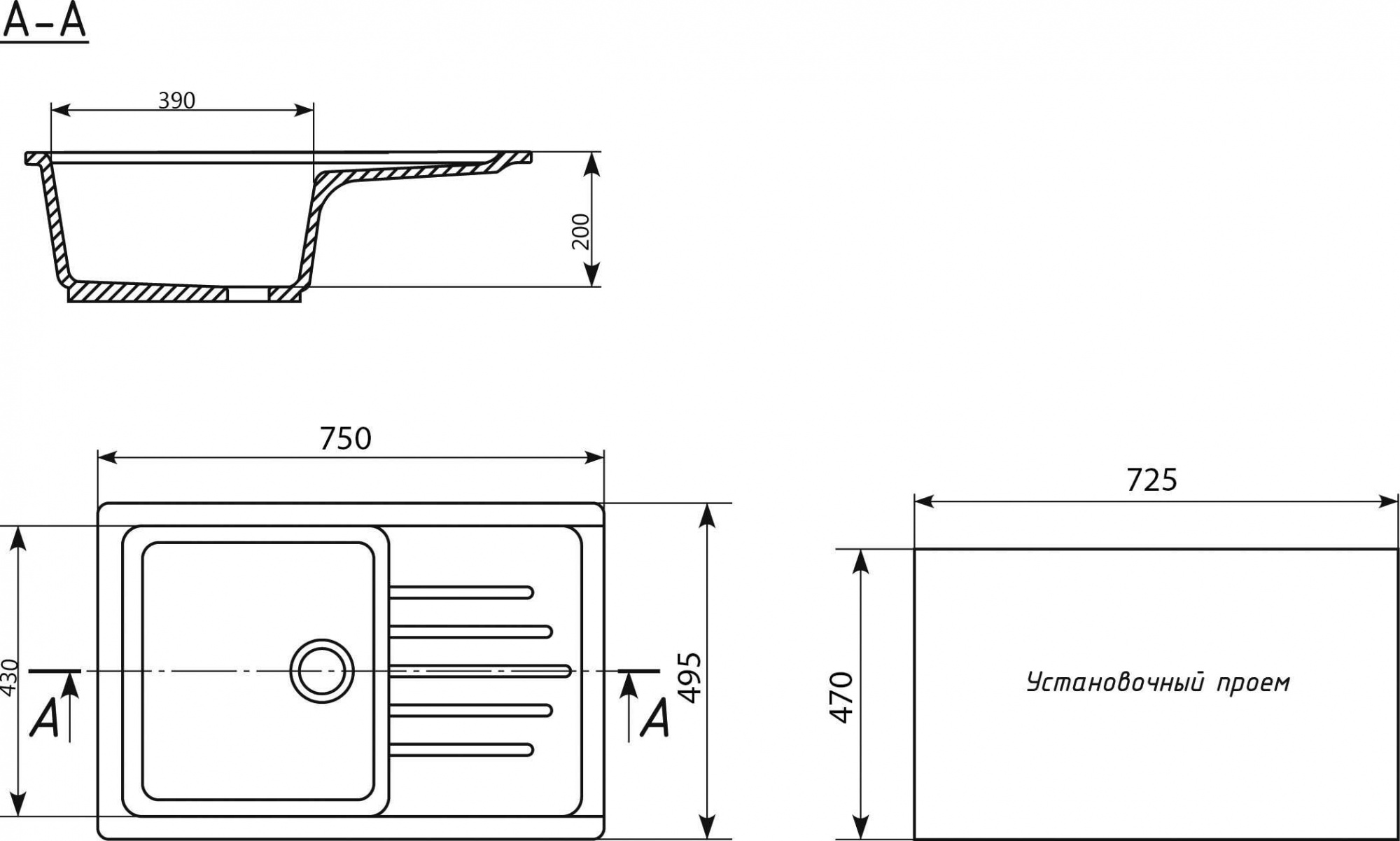 Мойка кухонная EcoStone ES-19-308 черная