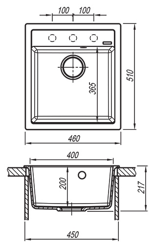 Одной из основных характеристик является прямоугольная форма чаши с внутренними размерами 40×36,5 см. Глубина 20 см обеспечивает удобство при мытье крупной посуды и кухонной утвари. Конструкция предусматривает три подготовленных технологических отверстия диаметром 35 мм для установки смесителя и дополнительных аксессуаров.