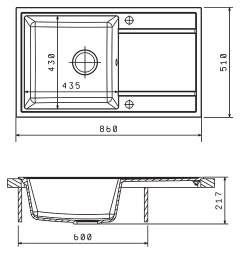 - Отверстия под смеситель: без монтажа смесителя на мойку / для мойки подходит смеситель, монтируемый в 1 отверстие