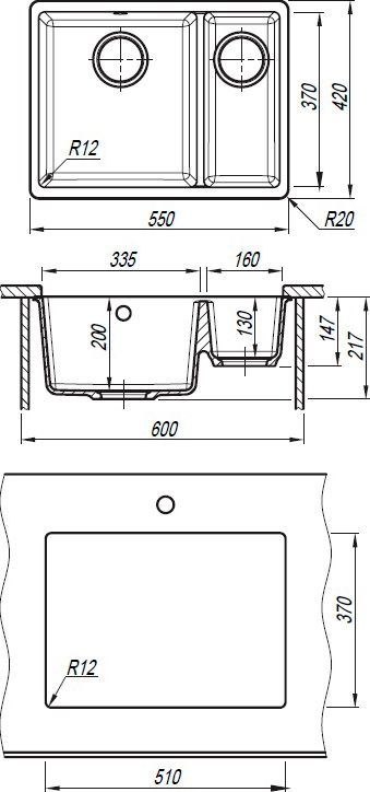Мойка кухонная Florentina Вега 335/160 антрацит