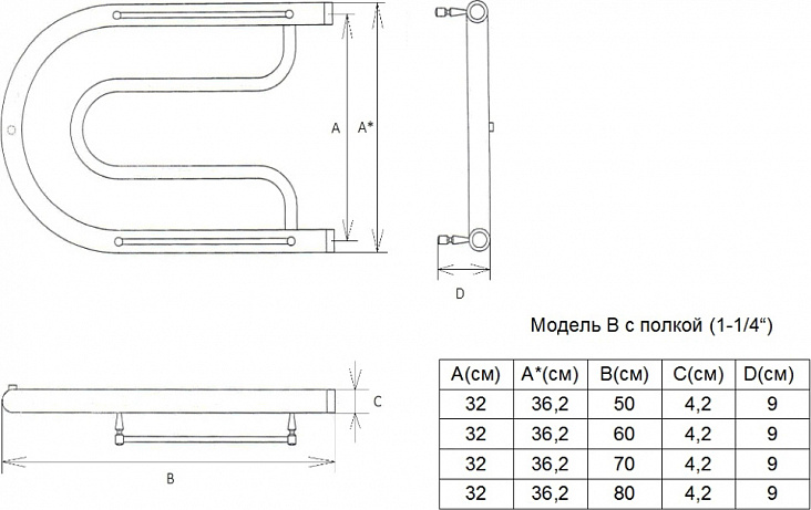 Полотенцесушитель водяной Двин B 32/80 1'' - 1/2'' с полкой
