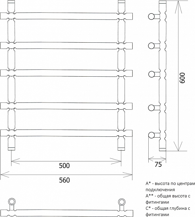 Полотенцесушитель водяной Двин Bubble 3 60/50 1''-3/4''-1/2''