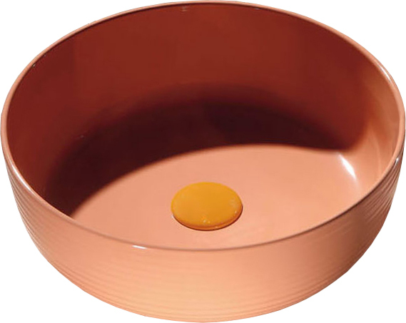 Выбрать в ванную комнату необычную цветную сантехнику? Хорошая идея! Присмотритесь к российскому бренду Melana и их цветной серии Color. Например, накладная раковина Melana Melana T4003H-B5 38,5х38,5 персиковая больше похожа на красивую керамическую посуду, чем на умывальник. Выполнена в жизнеутверждающем цвете. Станет ярким и запоминающимся элементом санузла. Устанавливается на столешницу или на тумбу. Это прекрасный выбор не только с эстетической, но и с практической точки зрения. Чаша круглая, большая и очень удобная для косметических процедур.<br>