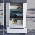 Модель оборудована системой хранения с одним выдвижным ящиком и секцией с дверцами. Ящик обеспечивает быстрый доступ к предметам повседневного пользования, а закрытая часть шкафчика позволяет хранить средства личной гигиены и чистящие принадлежности вне поля зрения. Продуманная конструкция направляющих обеспечивает плавное скольжение ящика и легкость эксплуатации.