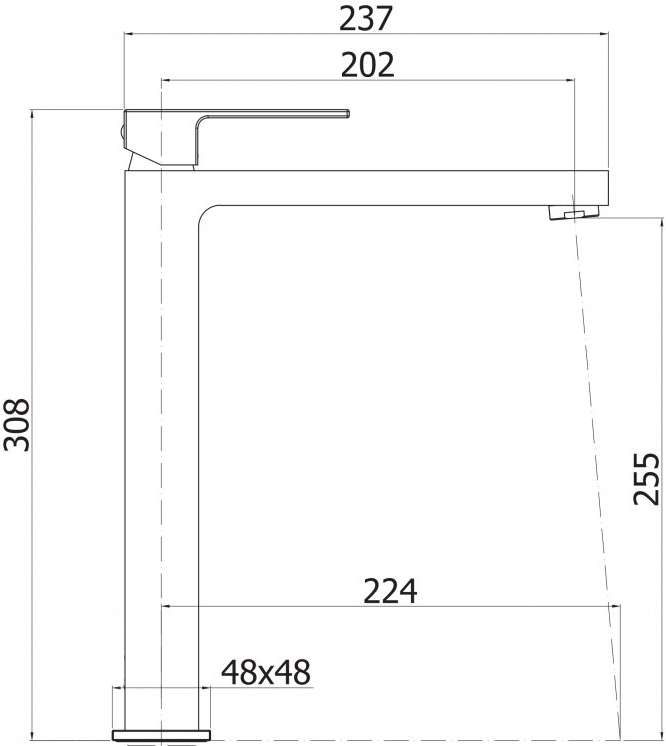 - Длина излива: 22,4 см