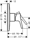 Смеситель Hansgrohe Talis S Highflow 72607000 - однорычажный для душа, монтаж скрытый. Смеситель оснащен технологией LowPressure, его можно использовать даже при давлении воды всего 0,2 бар.<br>