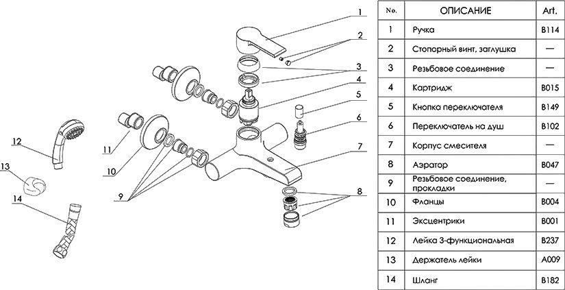 Смеситель Wasserkraft Ammer 3701 для ванны с душем