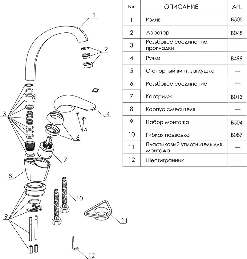 Смеситель Wasserkraft Rossel 2807 для кухонной мойки