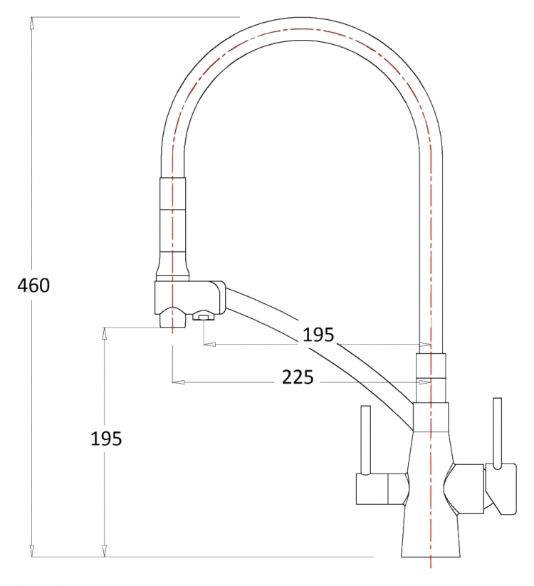 <li>Смеситель имеет совмещенный излив для фильтрованной воды.</li>
