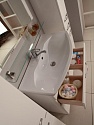 Продуманная система хранения помогает навести в помещении порядок и держать под рукой все необходимые принадлежности. В тумбе три выдвижных ящика на доводчиках, которые закрываются бесшумно и плавно. Верхний разделен на секции, удобен для хранения мелочей и косметики. Фасады произведены из влагостойкой МДФ и покрыты эмалью, предохраняющей мебель от воздействия влаги и придающей ей красивый глянцевый блеск. Дополнительную устойчивость тумбе придают передние регулируемые ножки.