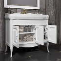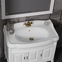 <p>Тумба с раковиной «Лоренцо» будет главной составляющей интерьера просторной ванной комнаты в стиле ретро. Несмотря на ширину 100 см, она не кажется громоздкой. Для ее изготовления используется экологичный материал – массив бука с матовым покрытием белого цвета. Модель на тонких изогнутых ножках имеет фрезерованный фасад с оригинальным рисунком и выполненными под старину изящными ручками-каплями бронзового цвета. В распашные дверцы интегрированы современные доводчики, обеспечивающие бесшумное закрывание отсеков. Тумба оснащена белой керамической раковиной замысловатой формы.</p>
