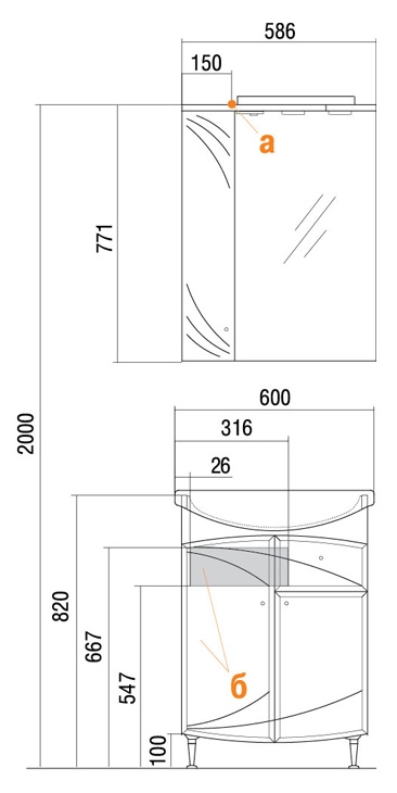 Фасад шкафного отсека украшен изящной фрезеровкой, которая придает модели индивидуальность и эстетическую завершенность. За дверцей скрывается практичное пространство с одной полкой, обеспечивающей достаточно места для хранения косметических принадлежностей и бытовых мелочей. Верхняя панель интегрирована с системой освещения, состоящей из двух галогеновых светильников, и розеткой для подключения электроприборов. Это решение создает комфортные условия для использования зеркала и обеспечивает удобство в повседневной эксплуатации. Наличие системы плавного закрывания гарантирует бесшумную работу дверцы и продлевает срок службы конструкции.