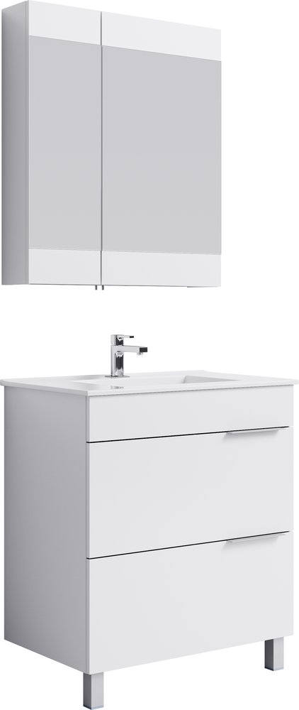Основной материал корпуса и фасада – качественная древесно-стружечная плита, обеспечивающая надежность конструкции. Сочетание эмали и ламината позволяет защищать поверхность от влаги и механических воздействий. Эмаль делает уход за шкафом простым и минимально трудоемким, а ламинат повышает прочность и устойчивость к царапинам, ударам и деформации. Белый цвет мебели универсален, подходит для различных интерьеров и создает чистый, аккуратный вид. Прямоугольное зеркало с четкими гранями формирует строгий визуальный контур. Гарантия производителя составляет 2 года.