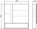 Корпус выполнен из ДСП, покрытого матовым ламинатом, устойчивым к влаге и износу. Цветовая гамма – светлое дерево, что делает изделие универсальным для различных интерьеров. Форма корпуса прямоугольная, габариты составляют 80 см по ширине, 80 см по высоте и 13,3 см по глубине. Фасадная часть представлена зеркалом, совмещённым с дверцами. Внутри предусмотрены полки, на которых можно расположить предметы повседневного использования.