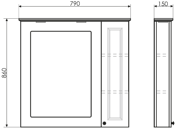 Зеркальная поверхность дополнена встроенной подсветкой, которая обеспечивает достаточное освещение рабочей зоны и упрощает ежедневные процедуры. Управление освещением осуществляется электровыключателем, расположенным в удобном месте. Фурнитура выполнена в цвете бронзы, что придает модели аккуратный внешний вид и обеспечивает надежность эксплуатации.