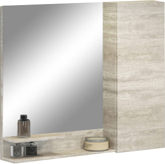 Зеркало-шкаф относится к категории бытовой мебели и предназначен для повседневного использования. Тип конструкции – шкаф-зеркало с полкой и закрытым отделением. Система хранения состоит из полок и дверок. Покрытие корпуса и фасада – матовое ламинированное. Цвет – светлое дерево.