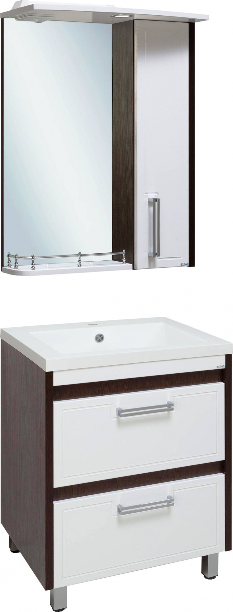 Конструкция шкафа демонстрирует устойчивость к эксплуатации в ванной комнате. Корпус из ЛДСП в цвете венге и фасады из МДФ белого цвета обеспечивают надежную защиту от воздействия влаги и пара. Качественные материалы сохраняют безупречный внешний вид на протяжении длительного срока службы. Сочетание контрастной цветовой гаммы, продуманной эргономики и функционального оснащения делает эту модель практичным решением для современных ванных комнат. Модель демонстрирует оптимальное сочетание компактных размеров и многофункциональности, предлагая все необходимые элементы для комфортной организации пространства.