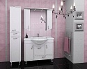 Зеркальный шкаф оборудован двумя врезными светильниками 220В и розеткой с выключателем. Справа и слева - шкафчики с распашными фасадами и двумя внутренними полками в каждом. Петли со встроенным доводчиком, ручки - 2шт.