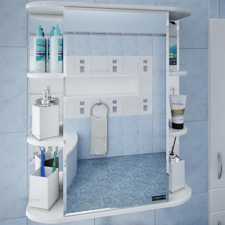 Особенностью модели является двустороннее расположение полок, которое создает удобную систему хранения с разделением на функциональные зоны. Такое решение позволяет рационально распределить банные принадлежности, косметику и гигиенические средства, обеспечивая порядок и быстрый доступ к необходимым предметам. Встроенная подсветка, расположенная над зеркалом, обеспечивает равномерное освещение без бликов, создавая комфортные условия для выполнения гигиенических процедур. Наличие розетки добавляет практичности, позволяя использовать электроприборы непосредственно в зоне умывальника.