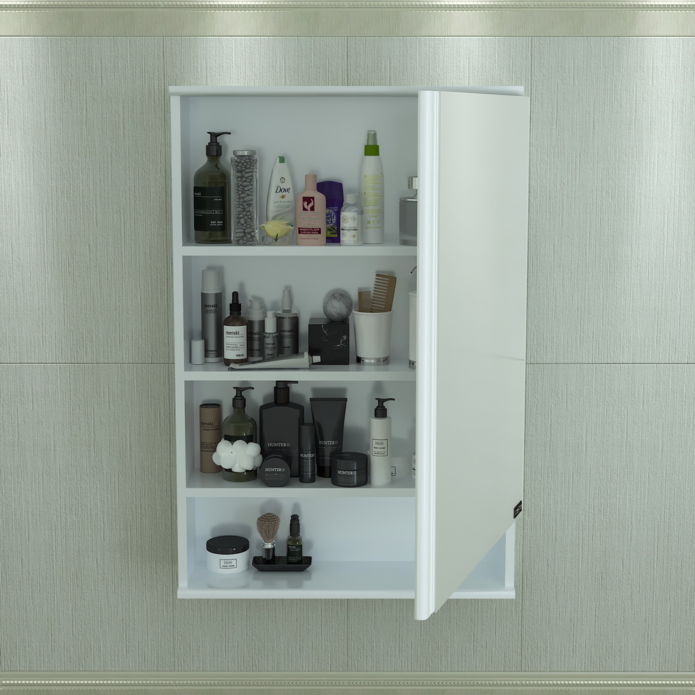 Внутреннее пространство оснащено полками и дверками, которые позволяют рационально распределять предметы гигиены, косметику и бытовые аксессуары. Полки выдерживают умеренные нагрузки и обеспечивают быстрый доступ к нужным вещам. Зеркальная поверхность совмещает функции отражения и хранения, экономя пространство и упрощая организацию ванной комнаты. Монтаж осуществляется с помощью комплектного крепежа, обеспечивая надежное и безопасное закрепление на стене. Зеркало-шкаф рассчитано на бытовое применение и имеет гарантию 3 года, что подтверждает качество материалов и сборки.