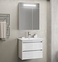Особенностью модели является современная светодиодная подсветка, встроенная в верхнюю часть конструкции. Светильник мощностью 12 Вт создает равномерное и комфортное освещение всей поверхности зеркала, обеспечивая идеальные условия для выполнения гигиенических процедур. Двухдверная конструкция с двумя полками создает многофункциональное пространство для хранения, где можно рационально разместить косметику, гигиенические принадлежности и другие необходимые мелочи. Механический выключатель обеспечивает простое и интуитивно понятное управление освещением, а глянцевая эмалевая поверхность корпуса придает изделию стильный современный вид.