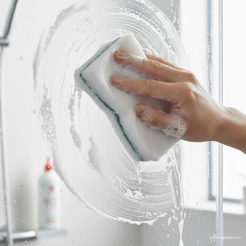 Эффективны народные средства: растворы уксуса или лимонной кислоты. А придать стеклу блеск и прозрачность поможет нашатырь, разведенный напополам с водой. Удобно также использовать резиновый скребок – он легко удалит мыльный налет, не царапая поверхность.